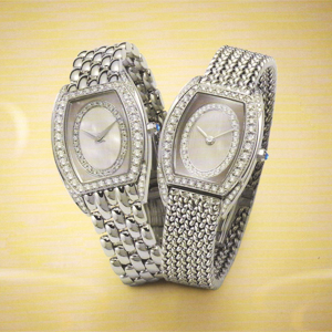 The watch becomes an expression of art to adorn as a jewel. Precious metals, such as 18K gold in its different colours, are used to cast the shape of the case and of the band. Diamonds and precious stones give spark to the watch. Mother of pearls and refined material are used to create the dial.
